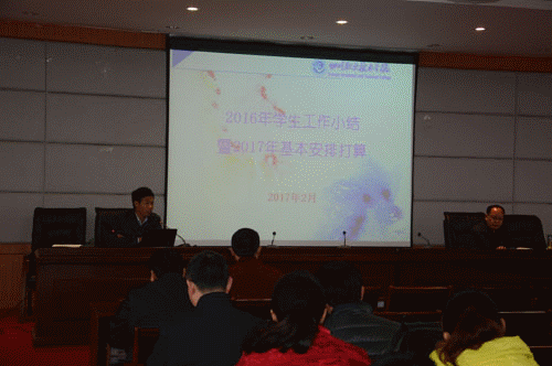 张亮部长使用大量数据,主要从学生工作队伍情况,学生违纪管理,心理、资助等重点专项工作方面对2016年学院学生工作进行了简要总结,肯定了2016年学生工作取得的成绩和进步,同时对工作中存在的问题提出了意见和建议,随后,对学院2017年学生工作基本打算进行了说明。