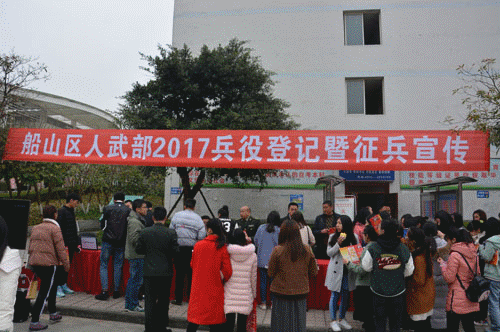 为落实《四川省兵役登记实施办法(试行)》,确保2017年学院征兵工作顺利开展,3月2日下午,院武装部协同船山区武装部在我院二食堂外举办了兵役登记暨征兵宣传活动。活动通过设立固定宣传站、播放宣传视频、发放宣传单、现场咨询等形式向在校学生宣传《四川省兵役登记实施办法(试行)》和大学生应征入伍条件、流程和政策。