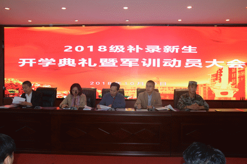 2018年10月10日上午,学院在文渊楼组织召开补录新生开学典礼暨军训动员大会,学工部李仁全、代玉孔、詹学涛、徐何,保卫处曾大志,军训教官和第二批次补录报到的60余名新生参加了会议。