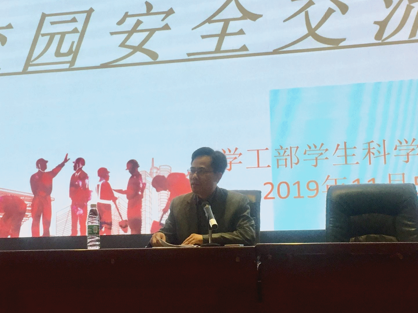 为进一步强化学生安全防范意识,加强对学生的安全教育,提高学生自防和自护能力。11月5日18时40分由学工部、保卫处、保卫部联合举办的校园安全交流大会于学术报告厅举行。学工部部长李仁全,保卫处副处长何雪梅和武装部、保卫处治安科、保卫处校卫队相关老师及保卫部、宿管部、2019级班长代表等200余人参加交流会。
