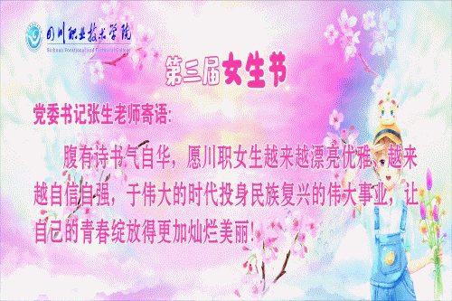 晚会开始前,学院党委书记张生寄语我院女大学生:腹有诗书气自华,愿川职女生越来越漂亮优雅、越来越自信自强,于伟大的时代投身民族复兴的伟大事业,让自己的青春绽放得更加灿烂美丽!学院教师代表、优秀大学生干部十佳女大学生以视频方式向全院女生表达节日祝贺。