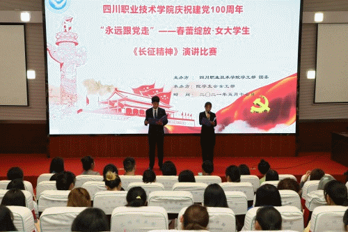 5月17日19时,由学生工作部、团委主办,院学生会女工部协办以“长征精神”为主题的“庆祝建党100周年‘永远跟党走’——春蕾绽放・女大学生演讲比赛”决赛在学术报告厅隆重举行。学工部团委、演讲与辩论协会指导老师、辅导员代表等6位老师出席大赛并担任评委,各系学生代表共计200余人观看比赛。