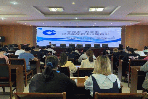 为全面深入宣传普及金融安全知识,积极教育培养在校大学生群体增强诚信理念和防诈骗意识,学工部、团委与建设银行遂宁分行营业部于6月17日下午15:00,在学院文渊楼410室联合开展了“学党史、办实事,金融知识进校园”的宣传教育活动。
