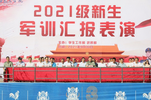 黄远新校长宣布2021级新生军训汇报表演正式开始。随着我校国旗护卫队迎校旗前行,由近5000名新生组成的44个受阅方队紧随其后,以昂扬向上的精神风貌踏着矫健的步伐、伴着嘹亮的口号于主席台前一一接受检阅。检阅结束后,受训新生进行了女子擒敌拳方阵、应急棍表方阵、男子军体拳方阵、匕首操方阵、战术救护方阵、拳术基本动作组合方阵的汇报表演。学校副校长何展荣宣读了优秀教官的表彰决定,出席领导及嘉宾为优秀教官颁发了荣誉证书及奖品。武装部对接下来工作进行了安排,并宣读了本次军训优秀学员的表彰决定。