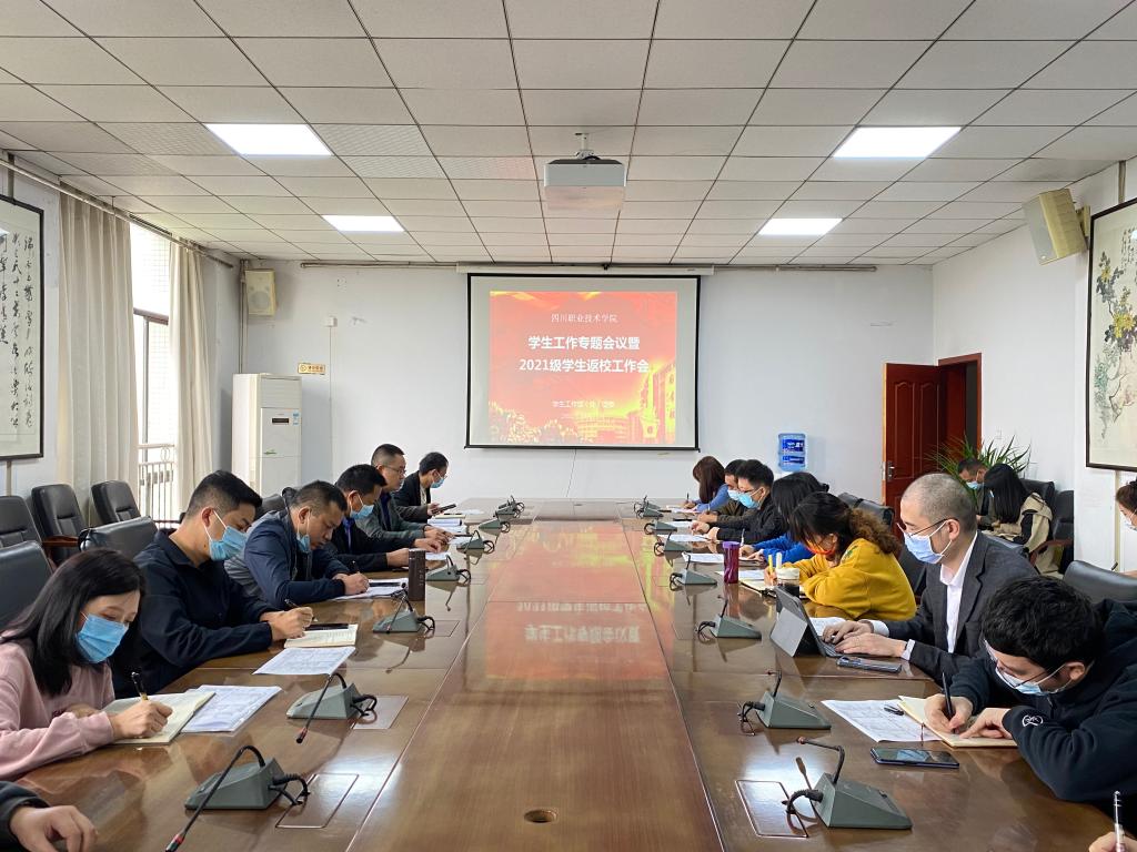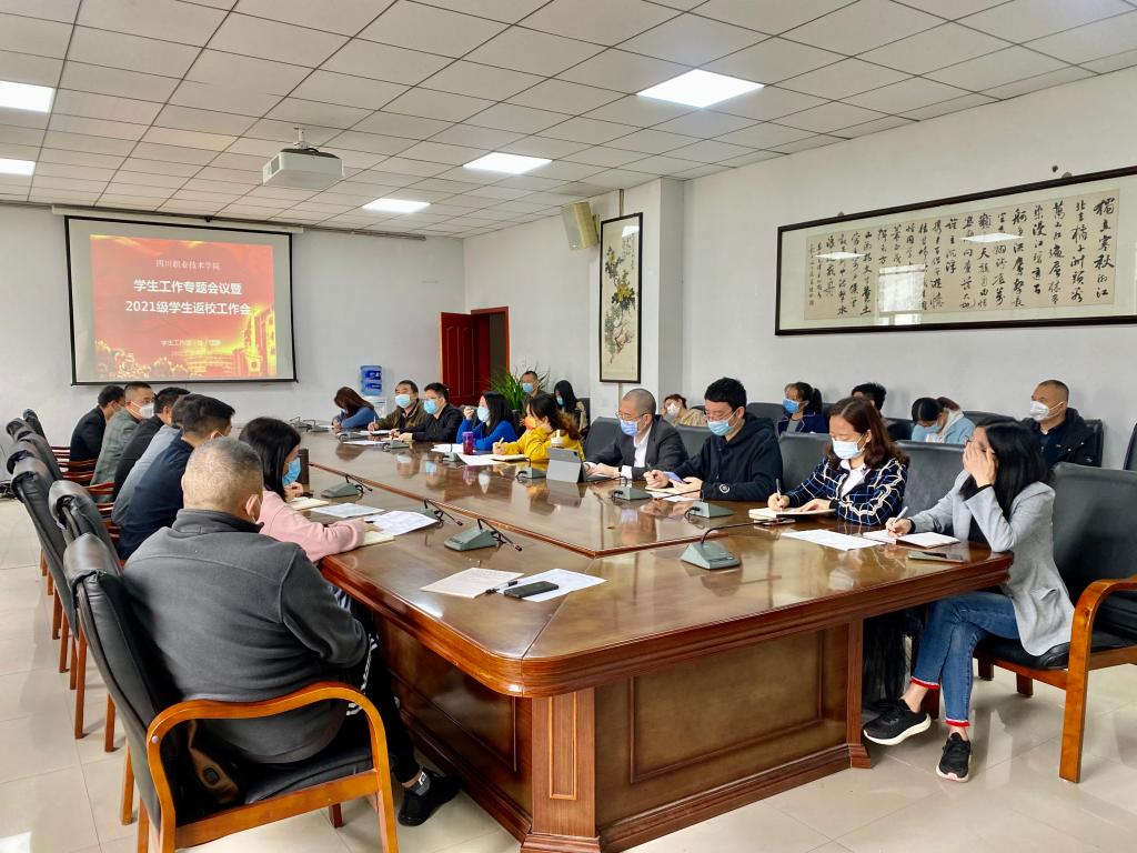 为进一步保障21级学生安全顺利返校复学,10月11日上午,学校召开“学生工作专题会暨2021级学生返校工作会议”。学校党委副书记胥长寿、各二级学院党总支副书记、团总支书记参加了会议,会议由学生工作部部长代玉龙主持。