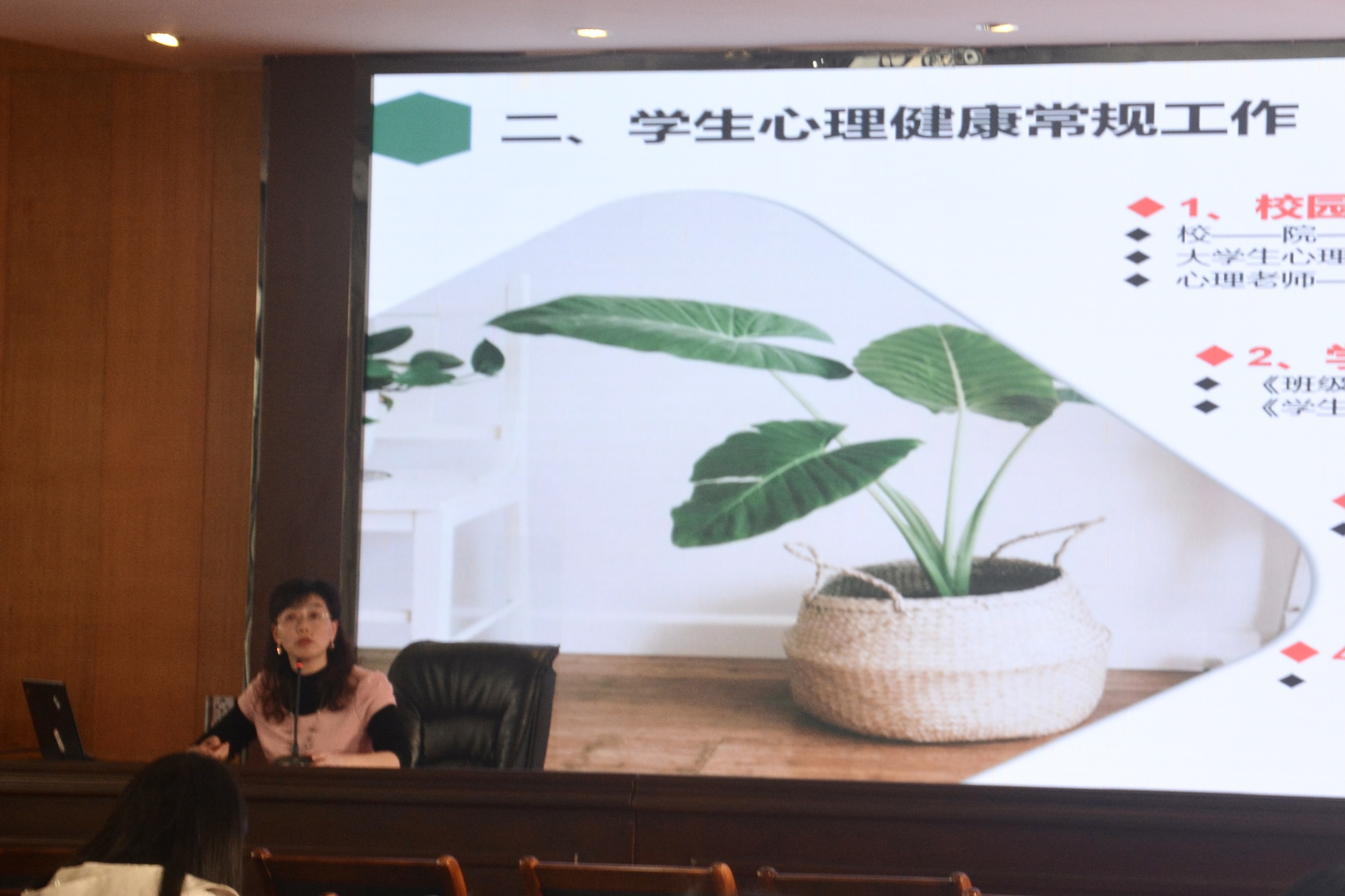 培训会上,大学生心理发展指导中心主任肖云面向21级、22级专兼职辅导员针对性开展了大学生心理健康工作要求及工作流程的培训。肖老师在培训中指出,关注大学生心理健康、做细做实心理健康工作极为重要,并就大学生心理健康常规工作、新生心理普测、学生突发心理问题处理等工作作了专业培训。