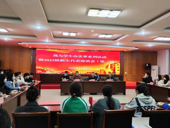11月8日晚19:00,学校在文渊楼410召开“我为学生办实事系列活动”暨2022级新生代表座谈会(第二场),副校长刘光彬出席座谈会。