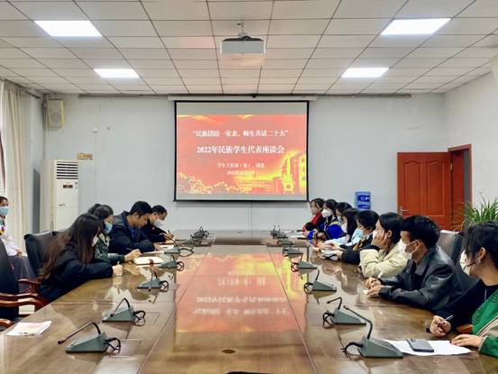 12月1日下午,学校在文渊楼404会议室召开了“民族团结一家亲,师生共话二十大”民族学生代表座谈会,党委宣传部、学生工作部(处)、团委、基建后勤处、安全保卫处、各民族师生代表共计30余人参加会议。