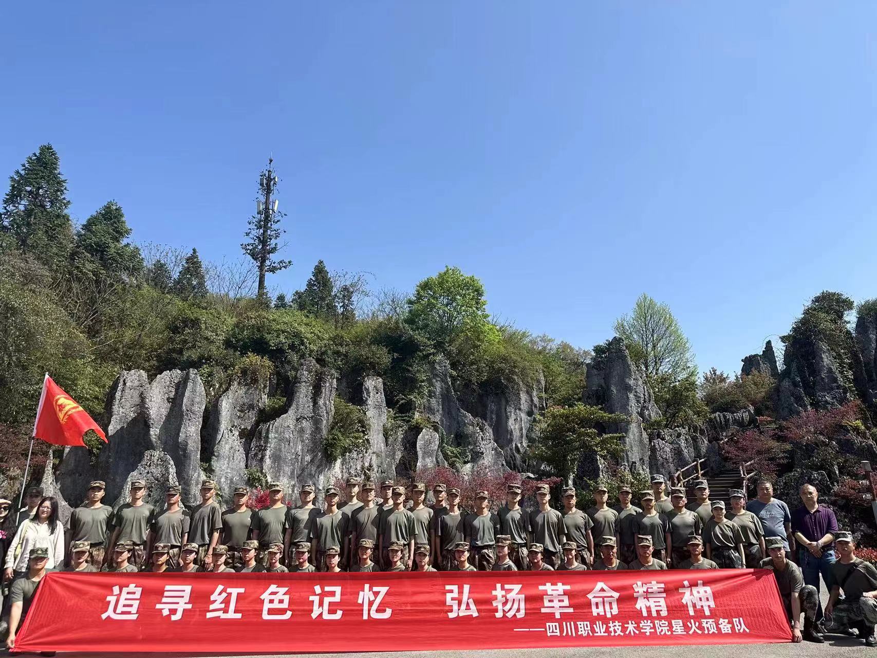 在红色教育基地华蓥山,全体师生参观了华蓥山起义纪念馆、红色浮雕墙、不忘初心馆,通过照片、文物,共同追忆共产党员、游击战士艰苦奋斗的峥嵘岁月,深切缅怀革命先烈的丰功伟绩。