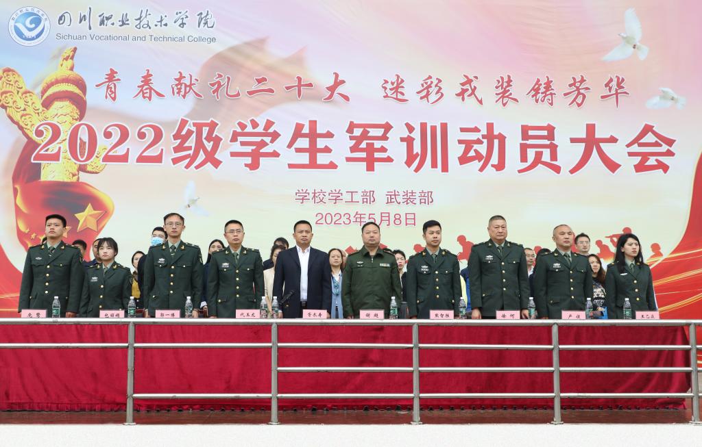 5月8日上午9时,学校2022级军训动员大会在田径运动场隆重举行。学党委副书记、军训总指挥胥长寿、船山区人武部上校政治委员谢超以及各二级学院党总支书记、副书记、团总支书记、22级专兼职辅导员、学校武装部全体成员参加大会。团委副书记熊智胜主持动员大会。