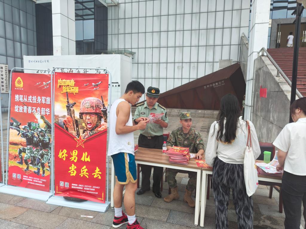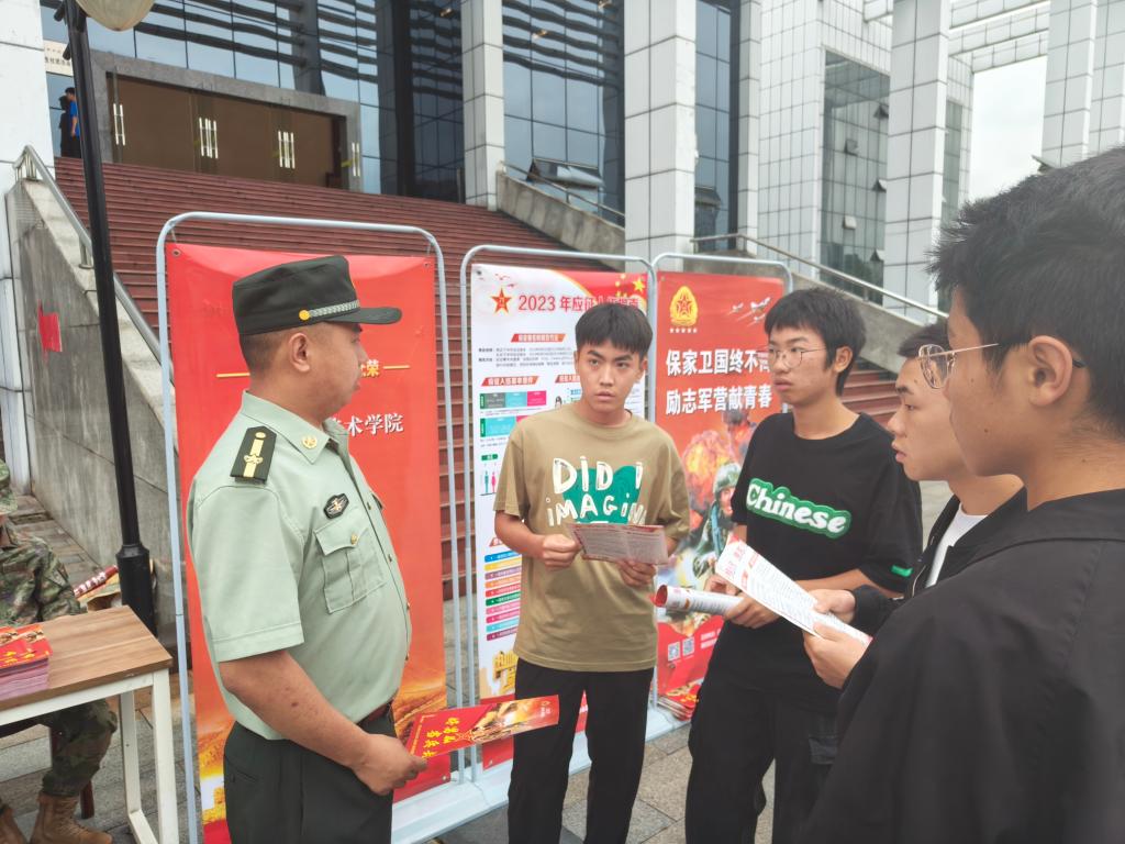 讲座后,学校联合船山区人民武装部在校设立征兵政策咨询点、发放征兵宣传单,面向全体学生全方位、深层次宣传国家征兵政策以及我校2023年秋季征兵工作,激发适龄青年投身国防建设、报效祖国的热情。