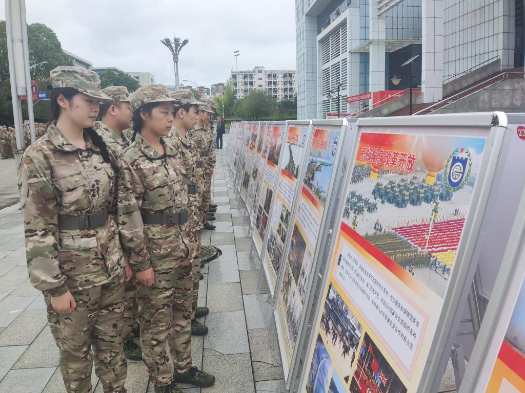 聆听完讲座后,同学们在剧院外观看了一系列主题展览。让现场学生进一步增强了国防意识。