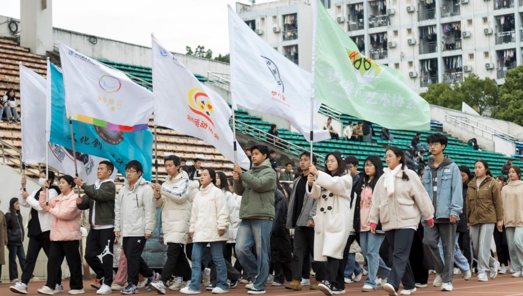 民族团结绘就同心圆,踔厉奋发启航新征程。11月18日,学校在第一足球场成功举办第十二届民族文化艺术节系列活动(一)——趣味运动会。学生工作部(处)、团委代表老师、社团部同心社等各协会及其他在校学生共计2500余各族师生参加本次活动。