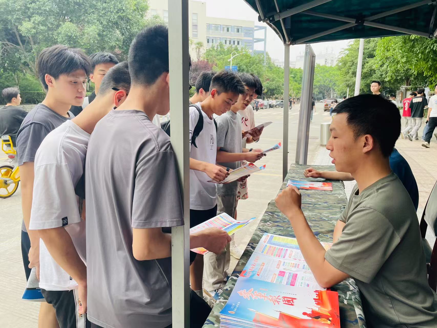 退役老兵们结合亲身经历,详细讲解了优惠政策、发展路径等内容,将军旅故事融入政策解读,让学生直观感受军旅价值。现场同学表示:“听完老兵故事,不仅对报名流程和征兵政策有了进一步的了解,更被老兵们的奉献精神所动容,希望能像他们一样忠诚报国,助力强军梦想。”本次宣传活动现场共接待学生1000余人次,发放宣传册3000余册。