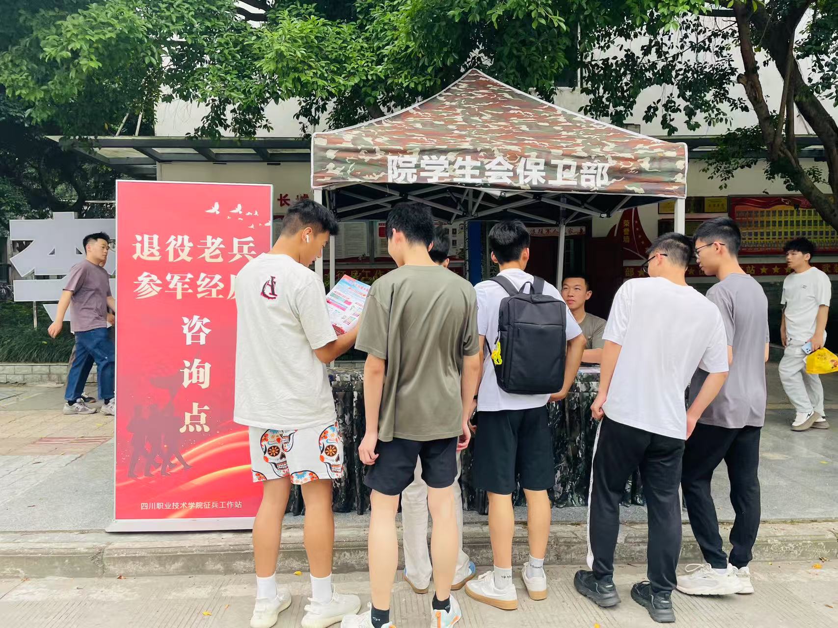 为进一步强化国防教育,激发青年学子报国热情,5月13日至16日,我校武装部开展了为期四天的夏秋季征兵宣传活动,活动现场设置了“退役老兵咨询点”,邀请老兵面对面分享军旅故事、解读征兵政策。