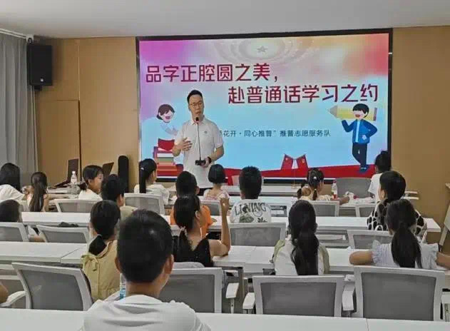 15天的朝夕相处,志愿者们用脚步丈量仁里镇的乡土温度。队员们放下“外来者”身份,怀揣真诚,走进田间地头、农家小院,他们与乡亲们促膝交谈。耐心聆听淳朴乡音,用心理解方言差异,在尊重本土语言文化的基础上,用温暖、规范的普通话架起沟通桥梁。队员们组织“乡村推普小课堂”,教爷爷奶奶们实用的问候语、数字表达、就医用语。他们协助村委会梳理、规范宣传栏和通知公告用语,提升信息传递的准确性与专业性。当乡亲们用带着乡音的普通话主动问候“大学生,来家坐”,当村委会采纳了队员们规范后的通知模板,推普的种子已在这片土地生根发芽。这些年轻人用汗水证明:真正的语言推广,从来不是居高临下的教导,而是心贴心的交流。