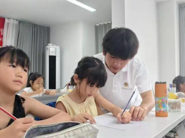 创意推普,让彩绘家乡“画”起来。推普不止于“说”,更融入“绘”与“创”。孩子们拿起画笔,描绘“我的家乡”、“我喜欢的人”。志愿者们适时引导:“这棵大树下为什么放着椅子?”孩子们在描述画作时,自然运用新学的词汇。色彩与线条化作语言表达的桥梁,普通话的种子在艺术创作中自然萌芽。