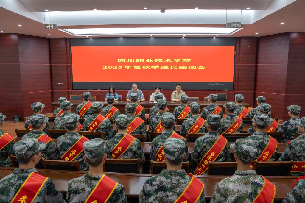 座谈会上,董雪梅代表学校向入伍学生致以祝贺,对其投身国防事业的家国情怀表示敬意。她结合国防建设形势,阐明参军入伍的时代意义,并提出三点期望:一是筑牢思想根基,深入学习贯彻习近平强军思想,坚定听党话、跟党走的政治信念;二是传承“明志、厚德、尚学、笃行”校训精神,展现川职学子良好风貌;三是锤炼过硬本领,成长为“四有”新时代革命军人,在国防建设中实现人生价值。
