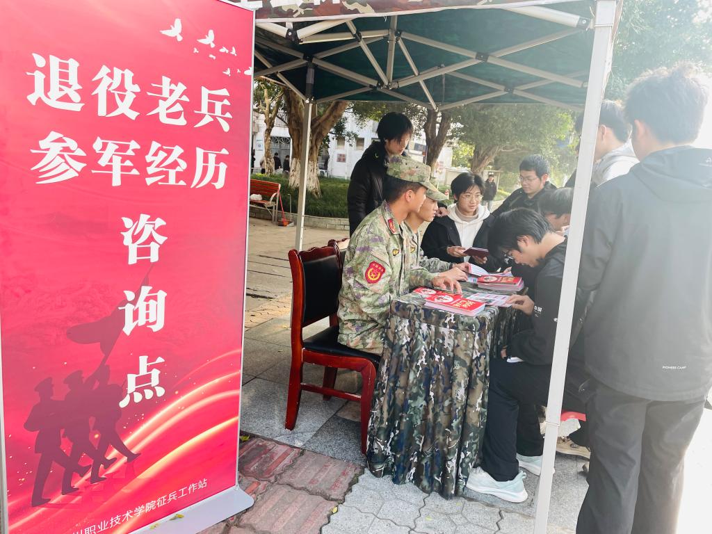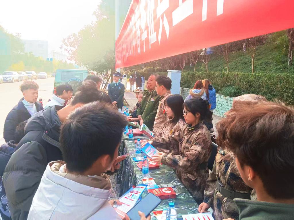 12月8日至12月12日,为期五天的春季征兵宣传活动在校园内火热开展。活动现场特设“退役老兵咨询点”,学校武装部邀请退役老兵亲临现场,以“亲身经历+政策解读”的方式,与学生面对面交流。老兵们分享了军旅生涯中的热血故事、成长感悟,详细解读了入伍基本条件及未来发展路径,将政策条文转化为鲜活的实践经验,让学生直观感受军营的磨砺价值与责任担当。活动共接待咨询学生1500余人次,发放征兵宣传册3000余册。